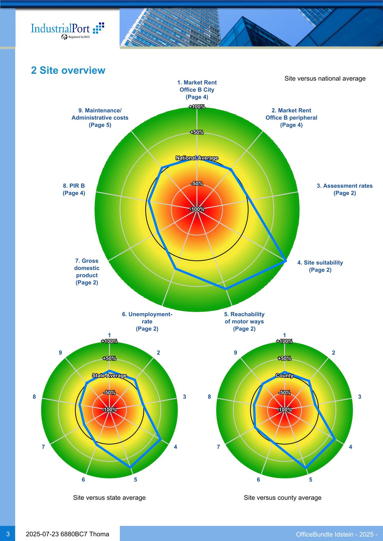 The OfficeBundle from IndustrialPort has been specifically developed for the professional valuation of office real estate. It combines precise location data with market-relevant indicators essential for any office space assessment.