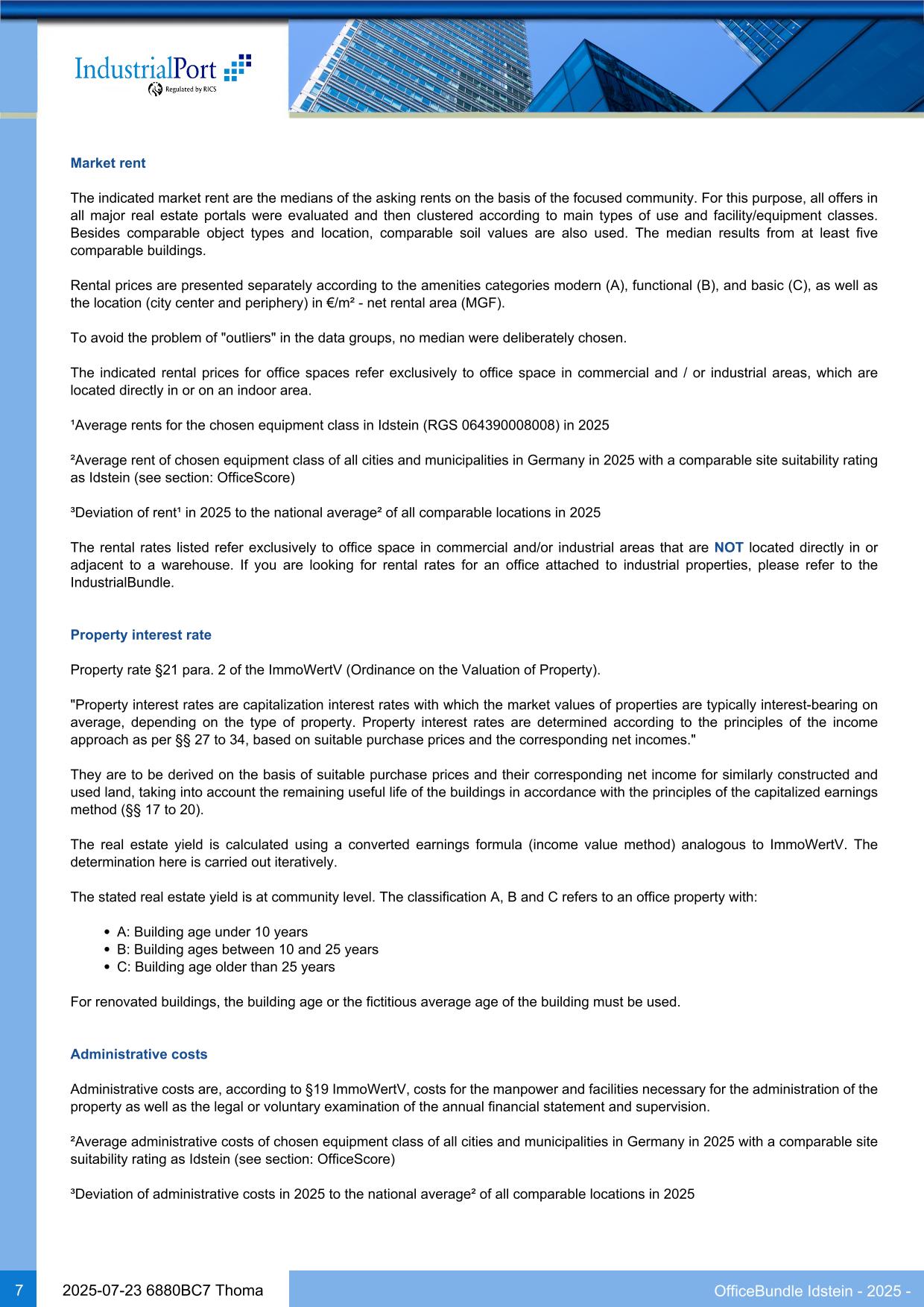 Anyone looking to value office properties needs reliable and up-to-date market data. With the IndustrialPort OfficeBundle, valuers, appraisers, and analysts receive a comprehensive data package for sound evaluation of office locations throughout Germany.