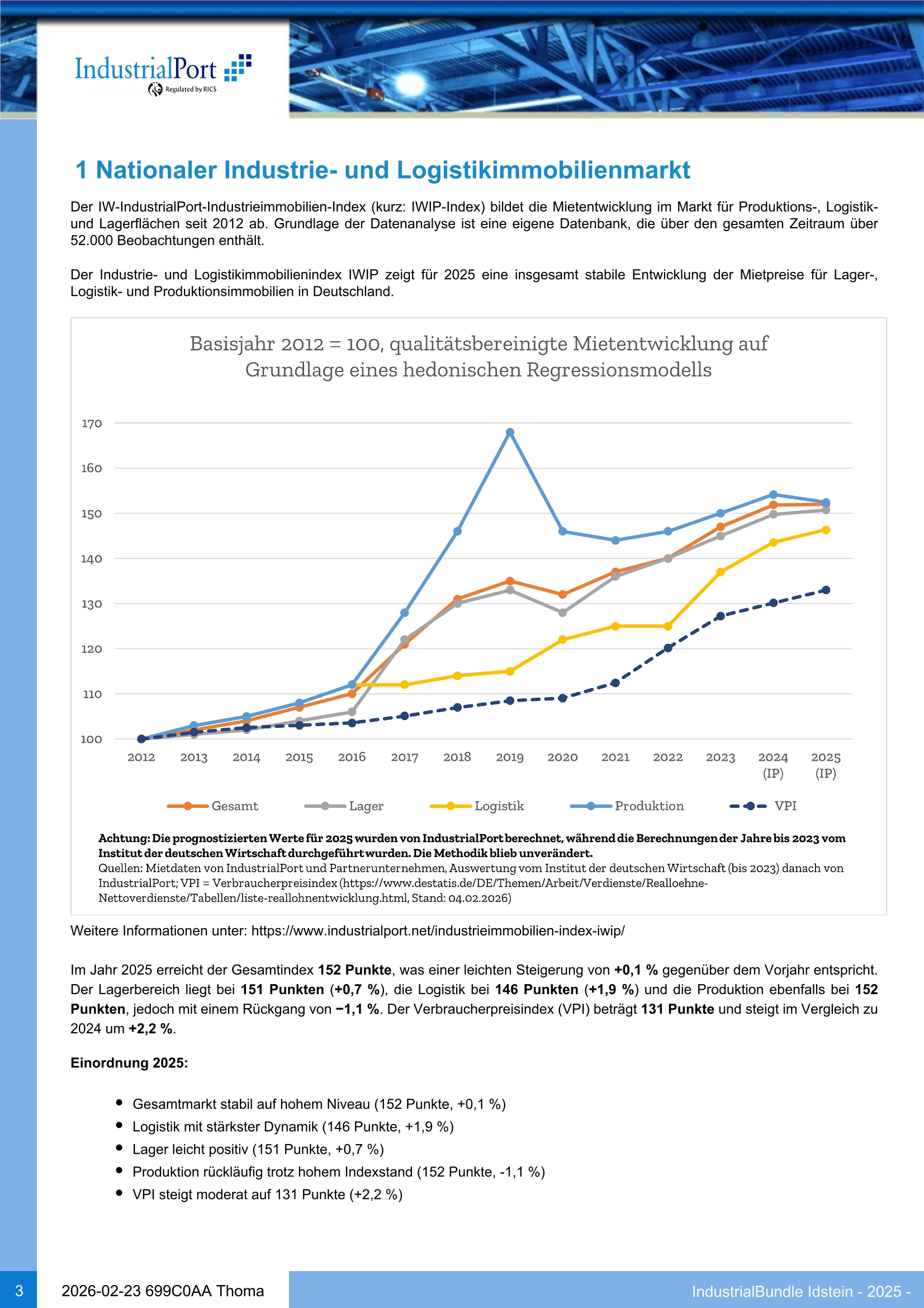 Der Datenbestand des IWIP-Indexes – als Anzeiger für Mietpreisentwicklung von Industrieimmobilien in Deutschland – ist ab dem Jahr 2018 die Grundlage des IndustrialBundle.
